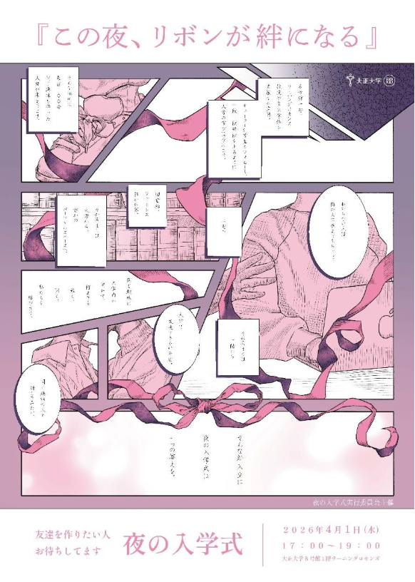 イベント情報在学生の有志が、新入生の友達作りの機会を提供することを目的とした 「夜の入学式」 を、令和8年4月1日(水)の入学式典後に本学8号館で開催します。